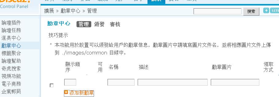 你好!論壇是可以加勳章的,至於你說你在背景放上link但無法顯示, 你要先把你的動章圖片並將相應圖片文件上傳到 ./images/common 目錄中。變成gif檔,把你的動章gif檔的link放上你勳章圖片的link就可以,如有不明白,可 ... 幪面超人cn 發表於 2010-7-30 12:18